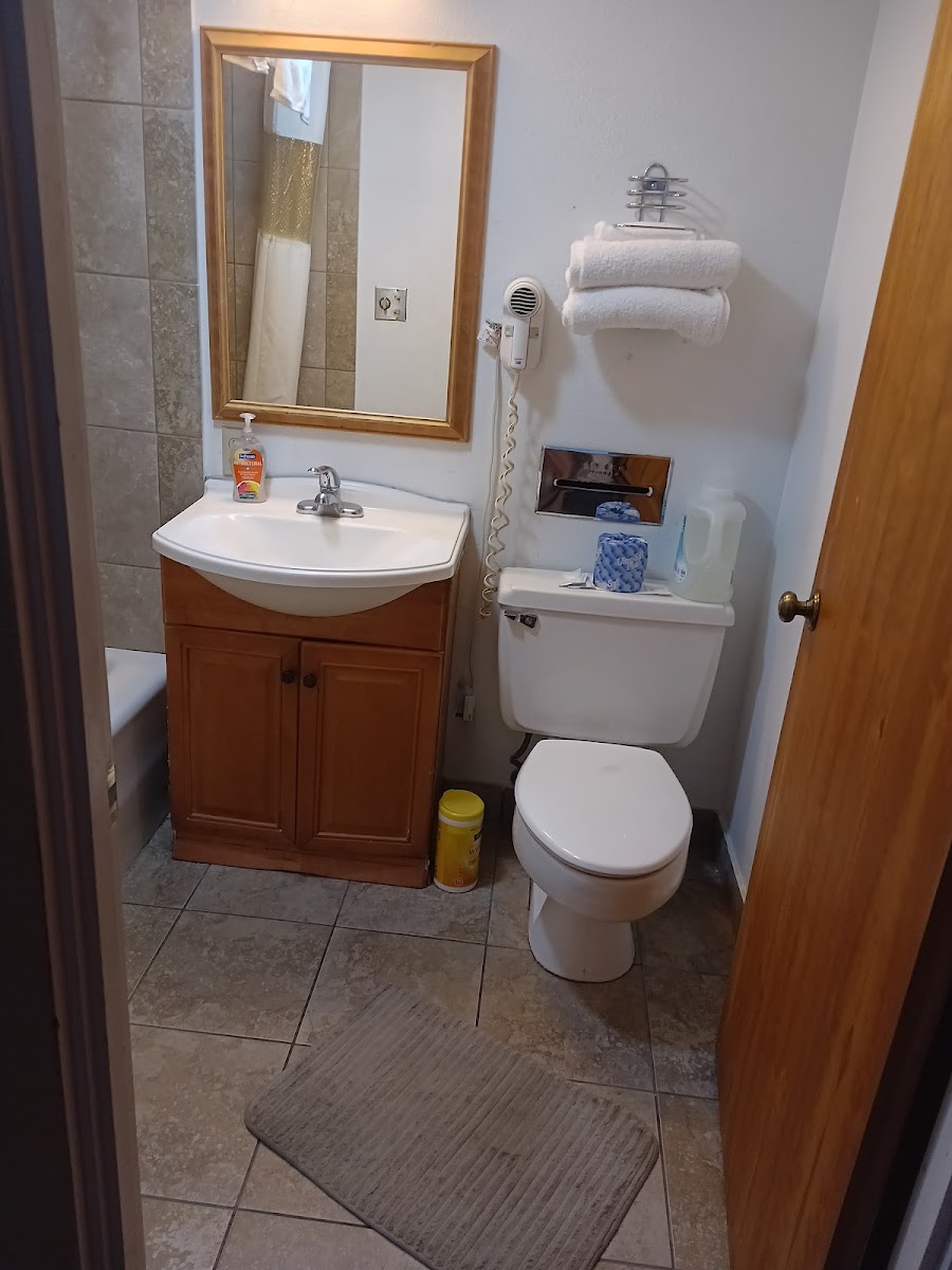 Perfect place if you need a place to rest. Although an older establishment it is clean and tidy. Has fridge, microwave, and big TV. No tub but spacious shower. Bed is comforable with crisp clean bedding. Perfect when a place to sleep is what you are looking for.
